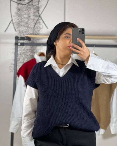 وست بافت قواره دار یقه هفت ✔️جنس پارچه نخ اکریلیک لطیف ✔️رنگبندی و مشکی