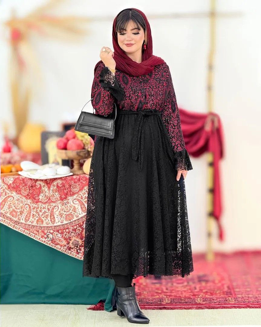 مدل پیراهن یلدایی✔️ ترکیب تافته و دانتل خارجی اصلی فری۳۸تا۴۶ ✔️قدکارحدودا۱۳۰ قداستین ۶۲ ✔️دوربازو ۴۰ دورسینه ۱۱۰