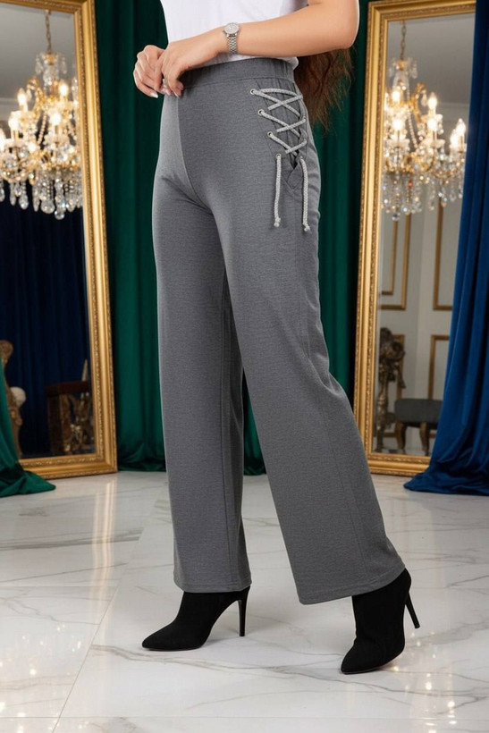 شلوار زنانه ملانژ بغل بندی در دو رنگ طوسی تیره و روشن