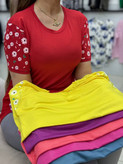 تیشرت زنانه جنس سوپر اسپان در ۱۲ رنگ شاد چاپ آستین