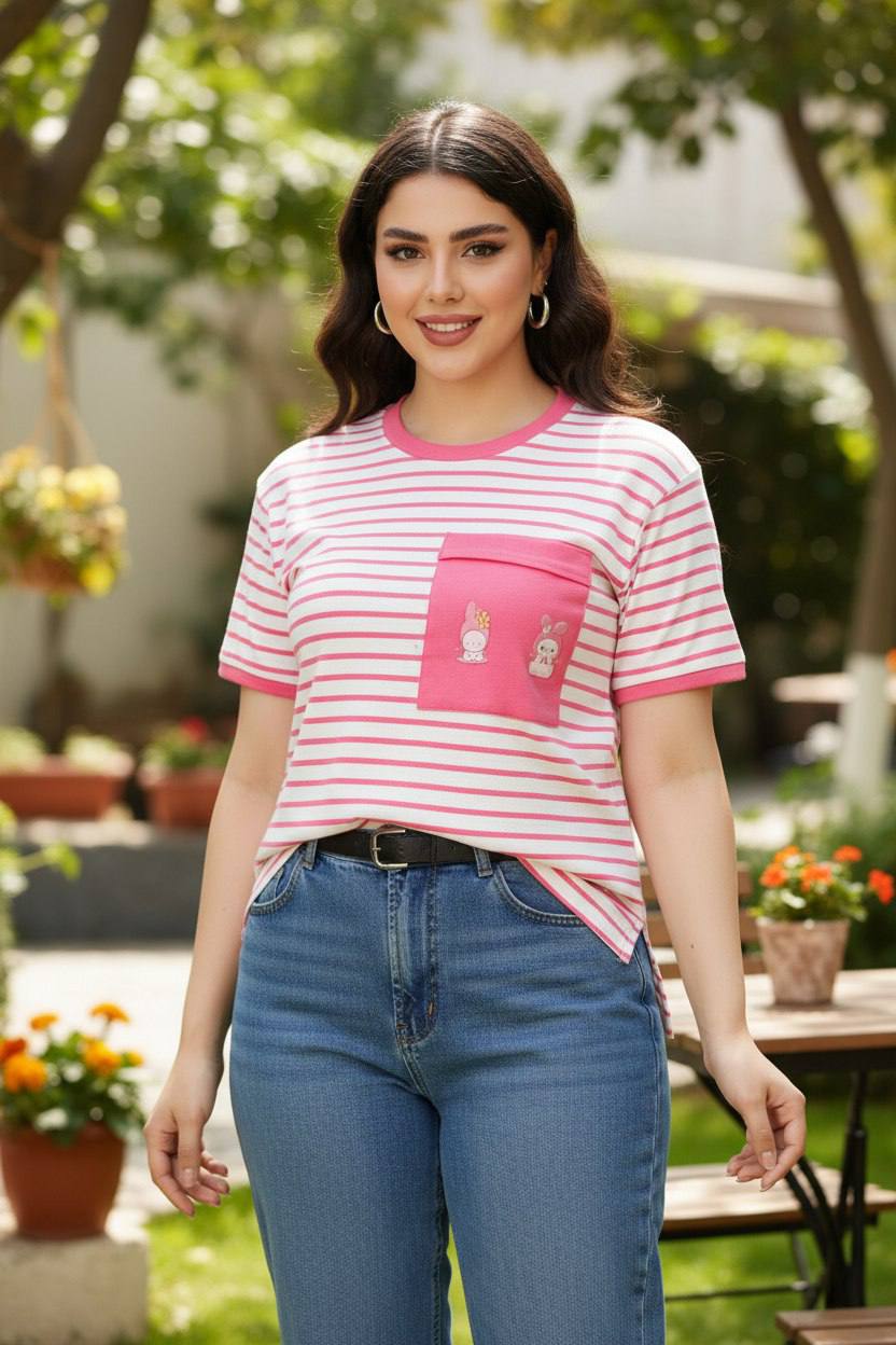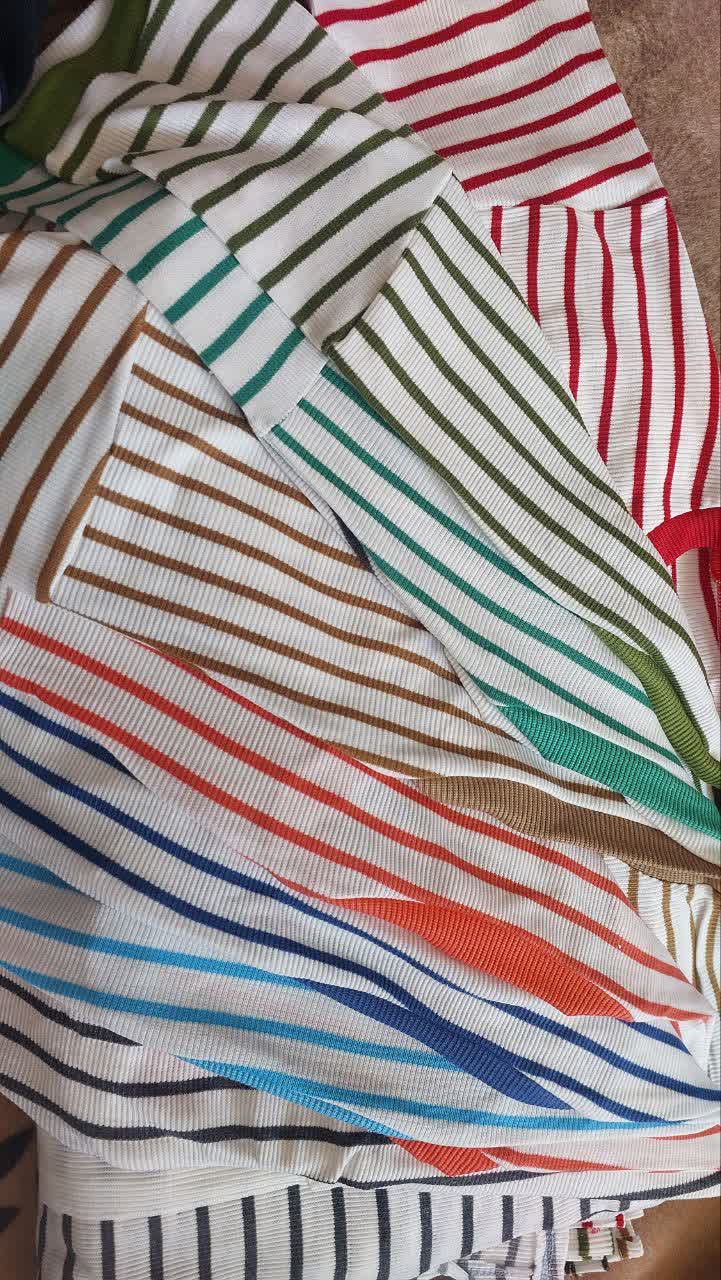 تیشرت کبریتی با کشسانی بالا فری سایز تا ۵۲ راه راه در ۱۲ رنگ