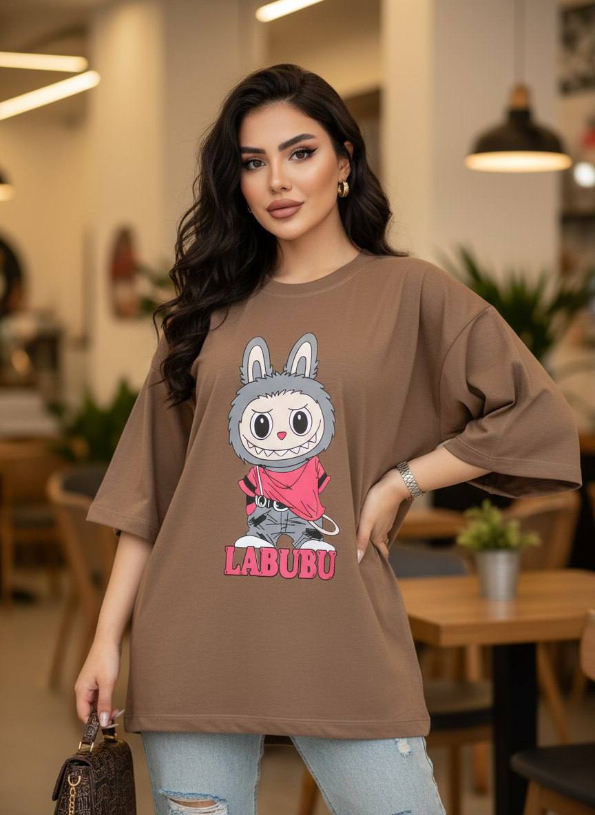 تیشرت باکسی لبوبو ⭕️پارچه دورس اعلا ⭕️رنگ بندی ۱۲ رنگـ ⭕️فریـ سایز مناسب ۳۶ تا ۴۸ ⭕️قد۶۰ ⭕️دورسینه ۱۱۰