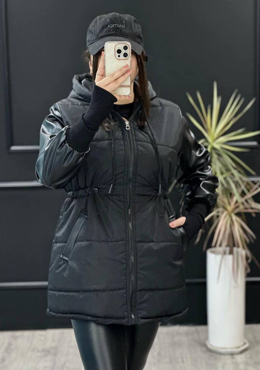 کاپشن آستین چرم ✔️جنس پارچه مموری ✔️آستین چرم تیرکمونی ✔️داخل آستر خور ✔️سایز فری 38تا 48 ✔️قد جلو 90