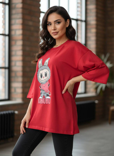 تیشرت باکسی لبوبو ⭕️پارچه دورس اعلا ⭕️رنگ بندی ۱۲ رنگـ ⭕️فریـ سایز مناسب ۳۶ تا ۴۸ ⭕️قد۶۰ ⭕️دورسینه ۱۱۰